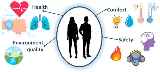 In this scenario of pervasive electronics, many IoT systems have been developed for monitoring vital signs and have later become commercially available. Examples include systems for the monitoring of the heartbeat [2], blood pressure [3], oxygen saturation [4], glucose level [5], breathing rate [6]. The monitoring of vital signs can be achieved by embedding sensors in wristbands, smartwatches, chest straps, or wearable apparel, and provides immediate feedback on the health condition of people that can be used either for anamnestic reasons or to trigger timely intervention in case of sudden events (e.g., heart attacks, strokes, suffocation) [7]. In the long term, health is strongly affected by environmental conditions, hence systems that monitor the air quality in terms of pollution and concentration of harmful particles also fall within the user-centered IoT measurement systems for human well-being [8]. In a broader context, considering the improvement of people’s general well-being, sensors, and IoT systems can be employed to monitor the perceived ambient conditions and eventually operate to set parameters, such as temperature and humidity, according to personal preferences [9,10,11,12]. Moreover, connected sensor systems also enable health preservation by doing environmental surveillance for safety reasons, for example, by checking constantly for the presence of smoke or toxic substances [13,14] or by performing structural health monitoring [15,16].