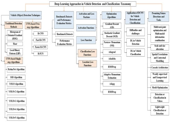Figure 1. Taxonomy of the Deep Learning Approaches in Vehicle Detection and Classification Tasks. - We present promising technological future directions and tasks in improving deep learning schemes for researchers.