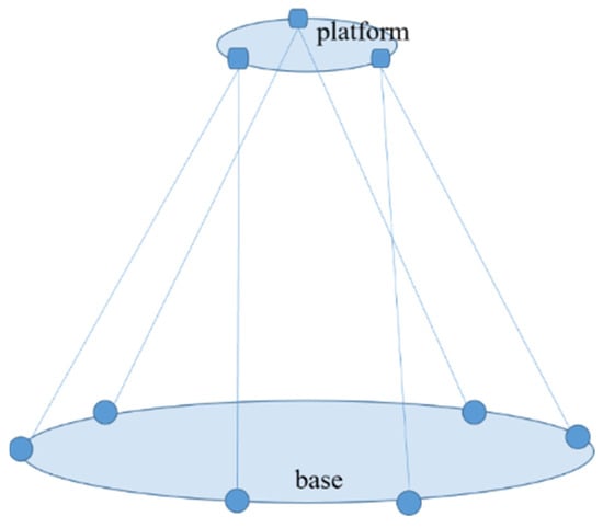 The method is derived from the principle of the Stewart Gough platform, where the platform and base are connected by six legs at three points on the platform and six points on the base to form a hexapod geometry platform, as shown in Figure 2. The Stewart Gough platform is a mechanical system that uses actuators to drive changes in the length of legs inducing changes in the pose of the platform. For the pose measurement system, the platform legs are the laser optical paths, which constitute the laser optical paths between the primary lens and the relay mirror. In traditional Stewart Gough platforms, forward kinematics is used to map expected changes in platform pose to changes in leg length. For the pose measurement system of the primary lens of the telescope, the laser ranging lengths are known, and the pose of the primary lens must be determined. This is achieved by using an inverse kinematics technique, which generated a sensitivity matrix used to calculate primary lens pose changes from the laser ranging length changes.
