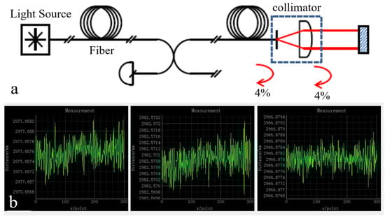 Laser rangefinders are the key equipment in experiments; the stability of their measured data largely determines the accuracy of experimental results. In addition, they have a long working distance range of up to 50 m, allowing for measurements to be taken over large distances. The laser rangefinders used in the experiment are two sets of IDS3005 laser rangefinders from ATTOCUBE Company (Munich, Germany), and the measurement principle is shown in Figure 4a. One rangefinder weighs less than 2 kg, which makes it a significant advantage for use in space telescopes. With a resolution of 1 pm and a repetition accuracy of 2 nm, one rangefinder has three laser channels and can measure three distances of data simultaneously. When two rangefinders are connected to a computer by a switch, six laser channels can be measured at the same time, which constitutes six laser paths of the measurement system.