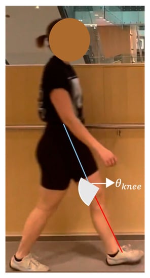 Knee extension in terminal swing is determined using the knee angle, the angle between the thigh and shank sagittal axes (Figure 8). When the knee is flexed, the angle is positive. Equation (4) determines the slope of the thigh segment, and Equation (6) is for the tibia segment slope.