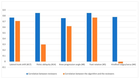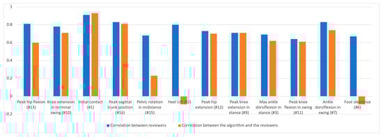 The Edinburgh Visual Gait Score (EVGS) is a clinical tool used to assess gait deviations in patients with various neurological and musculoskeletal conditions. EVGS consists of 17 parameters for each lower extremity, totaling 34 parameters. In practice, a person’s gait in sagittal and coronal views are video recorded while walking, using a handheld camera or a camera on a tripod. In typical clinical practice, the video is scored by a human according to the EVGS guidelines. The person scoring the video can use video editing software to pause the recorded video at specific gait events for analysis. Software can also be used to determine joint angles and other EVGS parameters. A 3-point ordinal scale is used to score each parameter: 0 = normal (within +/− 1.5 standard deviations of the mean), 1 = moderate deviations (between 1.5 and 4.5 standard deviations of the mean), and 2 = significant/severe deviations (more than 4.5 SD of mean). A lower overall score indicates less gait deviation []. In this research, to enhance understanding and maintain consistency, the 17 EVGS parameters were grouped based on foot events and gait cycle phases. Table 2 below lists the parameters and how they are organized according to these events.