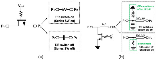 Switch mode of (a) series FET switch and (b) parallel FET switch.
