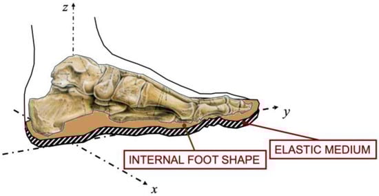 IS—the internal foot shape is a surface profile that describes the non-compressive material. The internal foot shape consists of the foot skeleton covered by other rigid media, such as the ligaments and the muscles;
