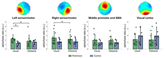 - Bruijn, S.M.; Van Dieën, J.H.; Daffertshofer, A. Beta Activity in the Premotor Cortex Is Increased during Stabilized as Compared to Normal Walking. Front. Hum. Neurosci. 2015, 9, 593. [Google Scholar] [CrossRef] [PubMed]