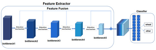 To keep a watchful eye on the system and increase its detection capability, this paper incorporated GCNet (global context network) into the YOLOv7 model, thus enhancing the extraction capability of the image features. The network structure consisted of a feature extractor and classifier, including bottleneck, attention mechanism module, fully connected layer, and SoftMax, as shown in Figure 3.