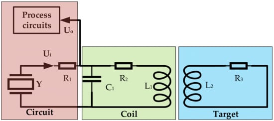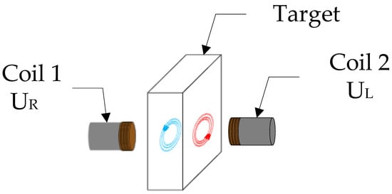 Two sensor coils with identical structures were selected to form a differential sensing system that eliminated the common-mode interference caused by the temperature drift of the coils, the temperature drift due to the metal resistivity of the target, and the temperature drift due to cable impedance. The arrangement is shown in Figure 2.