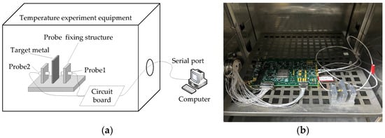The digital demodulation board, differential probe, and probe-fixing device were integrated into the temperature experiment box, as shown in Figure 13.