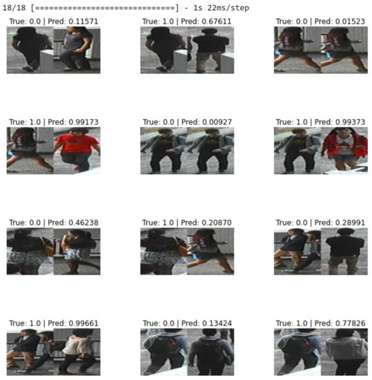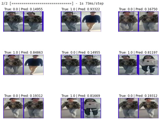 The re-identification module takes both the query image and candidate patches of pedestrians as input pairs, as shown in Figure 4. It extracts the feature embeddings and calculates the Euclidean distance to measure the similarity between the template and candidate patches. The patches are considered matched if the similarity between them is greater than the specified threshold, as shown in Figure 5. As a result, the module outputs a bounding box around the matching patch in the video frame and updates the template image with the matching image, showing the new position of the target pedestrian in the video frame. This process is repeated to re-identify the target with an updated template for tracking in the remaining video frames.