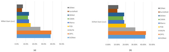 Pedestrian re-identification using metric learning based on classical and deep learning approaches has attracted the attention of researchers. In classical metric learning (CML) [47,48,49,50,51,52,53,54], certain rules are used to define the objective function. Syed et al. [55] proposed an adaptively weighted multi-kernel approach to improving the performance of person re-identification. They used Fisher discriminant analysis to enhance the robustness of classes. The approach first extracted color and texture features from image pairs and then mapped the extracted features. However, feature fusion-based metric learning may not accurately express the sample similarity and differences. To address this issue, Qi et al. [56] introduced person re-identification based on kernel learning with multi-feature subspaces. They achieved the distance metric and similarity functions by kernel learning and identified individuals by comparing the sum of the similarity of different feature subspaces. In deep metric learning (DML), the features are extracted using deep networks while the loss function is constructed to obtain the optimal parameters for feature extraction and reliable classification. Feng et al. [57] proposed a view-specific network model to overcome the challenge of intra-class variations. The model utilizes the cross-view Euclidean constraint to decrease the feature margin between different views and extends the cross-view center loss to provide a view-specific version. Varior et al. [58] presented a Siamese network and trained the model using contrastive loss by introducing a gating function for selectively emphasizing the common local patterns. Song et al. [59] used a binary segmentation mask for generating synthetic RGB-mask pairs as input and learned separate features of body and background region features by the mask-guided contrastive attention model for the person re-identification task. Chen et al. [60] boosted class-level contrastive ReID methods by leveraging the inter-instance pairwise similarity score using pairwise similarity ranking as one-hot pseudo labels for intra-class variance reduction and soft pseudo labels for the enhancement of different views to make the models more robust.