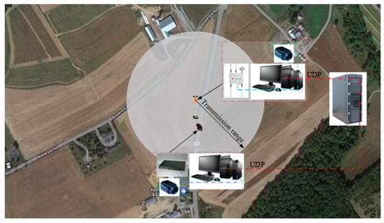 Data interaction structure diagram based on UDP, where the orange icon represents the placement position of roadside units.