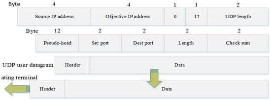 UDP uses a connectionless mode. The messages sent by the sender do not have the function of controlling the data byte order, and there is no handshake mechanism between the receiver and the sender. In this case, the message order may be confused, and packet loss may occur. With the development of network technology, the packet loss rate of UDP transmission is very low, especially in the short distance transmission area. Compared with TCP, the transmission efficiency is high, and it is more suitable for data transmission in smaller areas. The UDP message format is shown in Figure 10. The UDP message has no guaranteed fields for reliability, flow, and order control, and the reliability issue of communication will be guaranteed by the application layer protocol. UDP has no flow control and error control mechanism, so there is no window check link. In the UDP processing queue, the queue opened by the client is identified by the ephemeral port number, and the queue works as long as the process is running and is revoked when the process terminates. The client specifies the data source port number in the request use process. Messages are sent to the outgoing queue, and UDP takes them out one by one and delivers them to the IP layer. When the message arrives at the client, UDP checks whether the port number corresponding to the destination port number field in that user data message exists in the queue. If that style queue exists, UDP places the received user data message at the end of that queue. If there is no such queue, UDP discards the user data message and requests the ICMP protocol to send an unreachable message to the server.