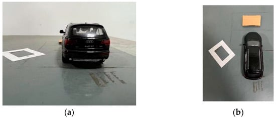 In the experiment, the OV5640 image acquisition unit and JY61p IMU are installed on the vehicle-like mobile platform (see Figure 13a). Obstacles were simulated using a 1:70 scale model with a real vehicle (see Figure 13b). Traffic signs and road obstacles are replaced by paper attached to the experimental platform (see Figure 13c).