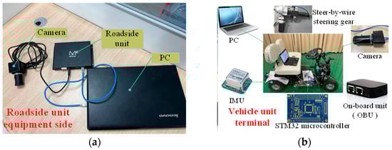 Overall equipment diagram for data interaction, where (a) shows the overall equipment at the equipment side of the roadside unit, and (b) shows the overall equipment at the equipment side of the vehicle.