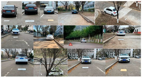 The campus road environment was recorded by the SONY IMX179 camera as well as the roadside unit camera, and the camera pose data were recorded by the HEC295 IMU. The pose of the camera at the roadside unit end was fixed, and the image data and camera pose data were processed by YOLOv5, the roadside unit-based obstacle detection method, the VIDAR-based vehicle-end obstacle detection method, and the obstacle detection method based on the fusion of roadside unit and vehicle cameras, respectively. The number of datapoints in the dataset is 7356. Figure 21 shows some of the data in the dataset. The results compare and analyze the accuracy and detection speed of the four methods.