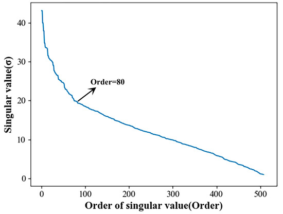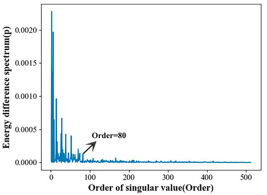 In Formula (2), represents the signal energy. ,, …, are the singular values of the matrix , and represents the total order, that is, up to . Therefore, the singular value energy difference spectrum is defined and normalized: