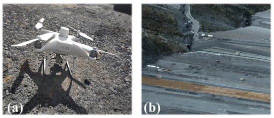 For image collection, DJI Genie UAV was employed. To ensure the safe flight and high-quality data acquisition of the UAV, the route was planned in advance, the heading and side overlap rates were set to 80%, and the UAV was manually controlled to take supplementary shots in local areas. In the postprocessing stage, the supporting software Context Capture was used to produce the collected multi-view oblique images into a 3D dense point cloud model and output it in .las format, as shown in Figure 13b. The slope part was cropped and used as the data source for solving the transformation matrix.