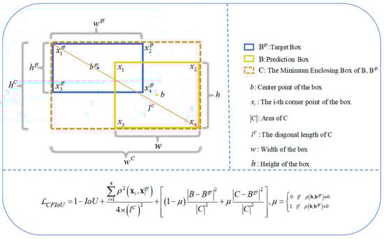 Based on Equations (11) and (12), a novel bounding box loss function, namely the CFIoU loss, can be defined by Equation (13):