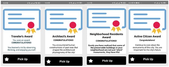 Roles, points, and awards were also adopted in order to gamify the experience. The users through the roles of the tourist, architect, local resident, and active citizen are motivated to observe, think, learn, and express their views about different aspects concerning the monuments.