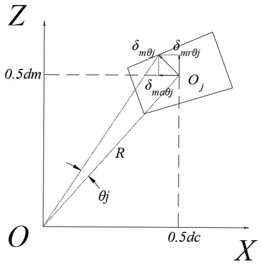 The contact load of Fmc1j and Fmc2j relative to the roller and inner and outer rings is very small, so the tangential friction term between the roller and the pocket in Equation (2) can be ignored in the calculation. Therefore, the external raceway contact force Qmoj for the reference and contact load Qmij and Qmfj, respectively, can be expressed as