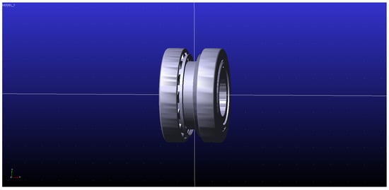 Simulation is implemented on Adams2020. The double-row tapered roller bearing model is established in Adams2020 software, as shown in Figure 25. Structural parameters and material property parameters are the same as shown in Table 1 and Table 2.