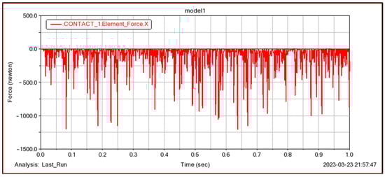 In order to verify the accuracy of the model proposed in this paper, in the Adams simulation, the bearing is carried out under the following three different working conditions. The solution results under the first condition are shown in Figure 26 (because the length is too long, this paper does not list all the solution results). The internal contact load is further extracted and compared with the model proposed in this paper, as shown in Table 3.