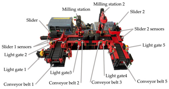 - Indexed Line with Two Machining Stations 24V. Available online: https://www.fischertechnik.de/en/products/learning/training-models/96790-edu-indexed-line-with-two-machining-stations-24v (accessed on 13 May 2022).