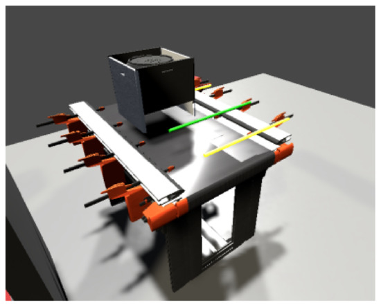 The Cyber-Physical and Intelligent Robotics Laboratory has been recreated digitally in [29], including all key elements for six-axis industrial robots to perform PTP, LIN, and CIRC motions. The human–machine interface has also been integrated, allowing users to create programmes with these motion types. The digital lab can be used for in-house training for small and medium-sized enterprises, without the need for installation, maintenance, or servicing costs. The customisability and virtual format also mean that there is no capacity limit and trainees can participate in exercises in parallel. Exercises were conducted to evaluate the programme’s impact on teaching and showed that using machine units can improve teaching. The digital lab uses the Unreal Engine 4 and Blender to create a simulation of a robot control method.