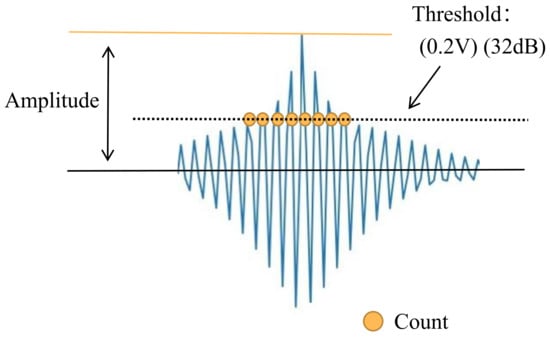 AE parametric analysis is a widely used method for investigation of AE signals. Most studies conducted to date have typically used AE parameters such as hit counts, amplitude, energy, duration, peak frequency, and other parameters to characterize AE failure mechanisms [65]. AE parameters include those obtained directly from AE sensors with suitable threshold settings or by selecting a suitable type of transducer (piezoelectric transducer), such as hit count, amplitude, and energy characteristic parameters. They also include characteristic parameters obtained using signal processing methods such as peak frequency.