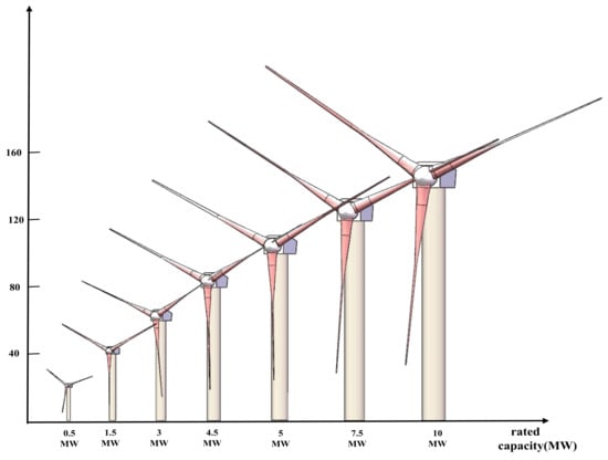 Wind power generation devices convert mechanical energy into electrical energy; the blade is the main structure that affects the power generation capacity. In order to improve the power generation efficiency, lighter and larger blades are used in large numbers [109], as shown in Figure 5. In recent years, larger blade diameters have been designed and applied to improve power generation efficiency. Accurate detection of the location of the damage source is crucial for accurate blade maintenance work.