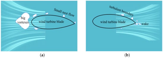 Main aerodynamic noise types of wind turbine blades. (a) Turbulent noise; (b) turbulent boundary layer noise.
