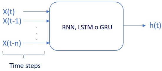 - Adam optimizer: The Adam algorithm [67] is one that combines RMSProp with momentum. To date, there is no algorithm that has superior performance over others in different scenarios [68], so it is recommended to use the optimization algorithm with which the user feels the most comfortable when adjusting the hyperparameters. For running the simulations, the Adam-based optimization algorithm will be configured for RNN, LSTM, and GRU. Ref. [69] indicates that the Adam optimization algorithm has been a very popular optimizer in deep learning networks in recent years.