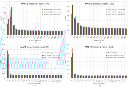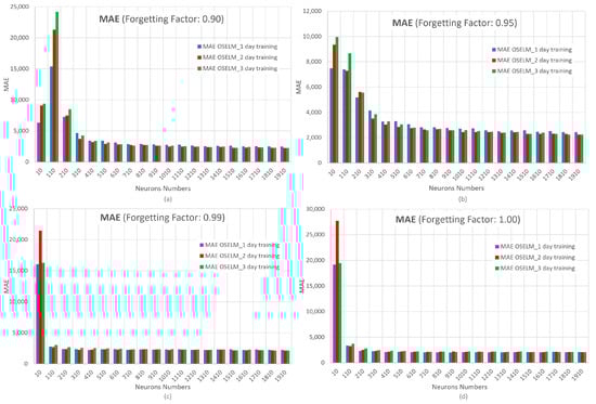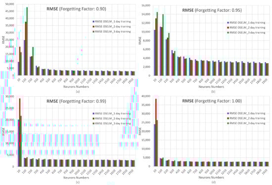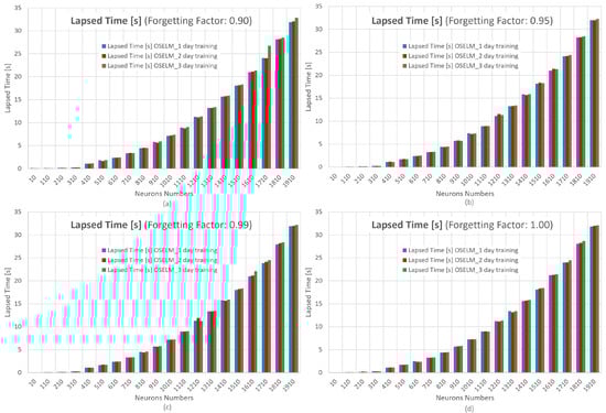 - Forgetting factor: The forgetting factor allows the OS-ELM neural network to continuously forget obsolete input data in the training process, in order to reduce its negative effect on subsequent learning. If the forgetting factor equals 1, it means that the OS-ELM neural network does not forget anything. If the forgetting factor is less than 1, it starts to forget data.