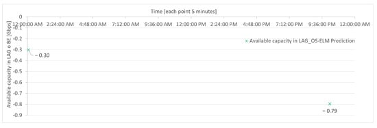 On the other hand, neural networks have begun to be used to predict time series, because time series are the optimal method to describe network traffic behavior, in particular regarding recurrent neural networks (RNNs) and their variants, long short-term memory (LSTM) and gated recurrent unit (GRU) [14,15,16,17]. There is also a neural network that stands out for its speed called online sequential extreme learning machine (OS-ELM), which has been shown to be efficient and especially fast compared with gradient-based networks [18,19,20]. This paper’s primary objective is to predict traffic in a short period of time to activate and deactivate the ports of the link aggregation (LAG or BE) between two nodes within a TSO network in order to save energy on fiber optic links while maintaining a high quality of service (QoS) for clients; the main contributions of this work are presented below: