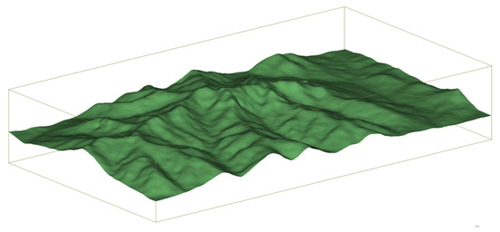 The RT method is a deterministic channel modeling approach and has been used in numerous studies and analyses, especially when combined with electromagnetic wave propagation to calculate characteristics. In this paper, RT-based Wireless Insite (WI) software (version number: 3.3; creator: REMCOM; location: Nanjing, China) was used to simulate UAV AG communications in mountainous scenarios [35]. Reconstructions were conducted based on realistic scenarios located in the southern mountainous region of Jinan, Shandong Province, west of the Ji-Tai highway and north of the S317 road. The specific range is 117.0601° E to 117.1081° E and 36.4993° N to 36.5210° N. The terrain of the simulation environment is shown in Figure 2. The selected terrain material is wet earth. The characteristics of the terrain material parameters tend to be varied at different frequency bands, as shown in Table 1.