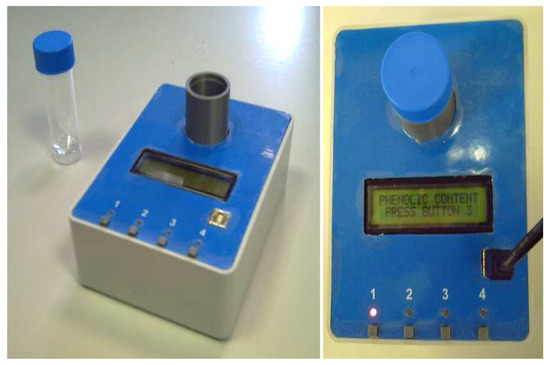 Picture of the proposed portable sensor system for the determination of peroxide index and total phenolic content in olive oil.