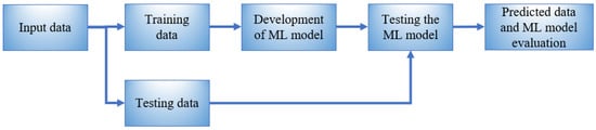 In our work, we aim to build an ML model that can identify the outdoor event among the three classes using the reflected waveform from the FBG sensor and label the output to one of the classes shown in Table 1. Figure 2 shows the standard ML model design processes. The processes start with splitting the input data into training and testing data. The training data are used to develop the ML model. The developed ML model is then tested using the testing data [36,37,38]. Finally, the model’s robustness is assessed from its predicted output data. We will investigate two machine learning algorithms for classification, which are the linear discriminant analysis (LDA) algorithm and the logistic regression algorithm. The linear discriminant analysis (LDA) and logistic regression are supervised learning algorithms that have recently been used in different fields, such as the classification of oil slicks and look-alike slicks [39], breast cancer diagnosis [40], classification of dyadic conversation scenarios [41], power quality disturbances [42], and seizure detection [43]. We opt to explore these three algorithms for intruder detection because of their simplicity and low computational cost.