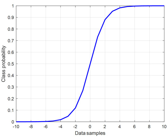 where is the classification probability such that the given data sample z is classified to class ‘zero’ if is close to zero; otherwise, it is classified to class ‘one’. Figure 3 shows the standard shape of the sigmoid function.