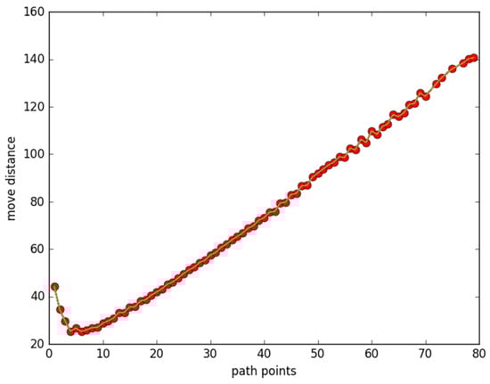Moving distance changes with number of discrete points.