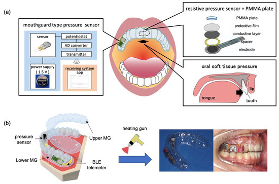 Matsumoto, H.; Tomoto, K.; Kawase, G.; Iitani, K.; Toma, K.; Arakawa, T.; Mitsubayashi, K.; Moriyama, K. Real-Time Continuous Monitoring of Oral Soft Tissue Pressure with a Wireless Mouthguard Device for Assessing Tongue Thrusting Habits. Sensors 2023, 23, 5027. https://doi.org/10.3390/s23115027