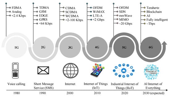 The progression of cellular networks, starting with 1G and advancing to 6G, has been accompanied by introducing various applications specific to each generation.