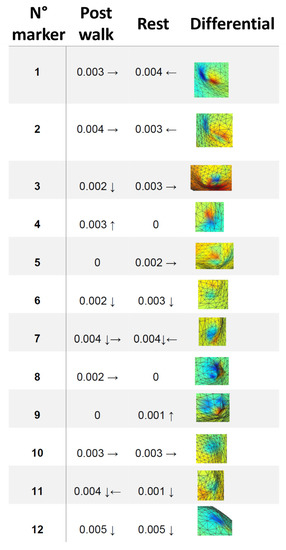 The differential map shows how 20 min of rest led to relevant cooling (3/4 °C) only in the anterior apical part, whereas the supra-patellar, flaps and popliteal fossa showed limited cooling of about 0–1 °C (Figure 11).