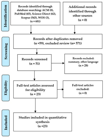 After conducting the searches, the authors identified a total of 681 articles. Specifically, they found 8 papers from ACM Digital Library, 65 articles from PubMed, 62 from ScienceDirect, 543 from Scopus, and 3 from WOS.