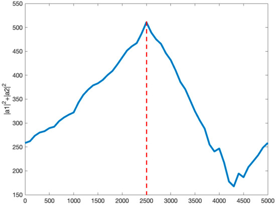 It can be observed from Figure 2 that reaches its peak at the midpoint of the observation object; therefore, the estimated hopping time is the midpoint according to theorem 1, which is consistent with the actual result.