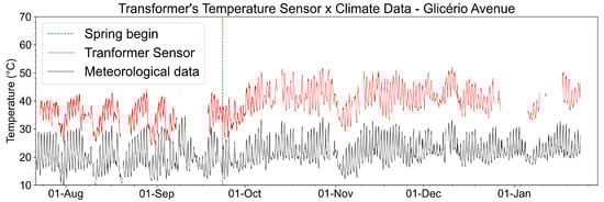 Recovered temperature on the surface of Transformer 1 compared with meteorological data of the period. The beginning of spring in the southern hemisphere is also indicated.