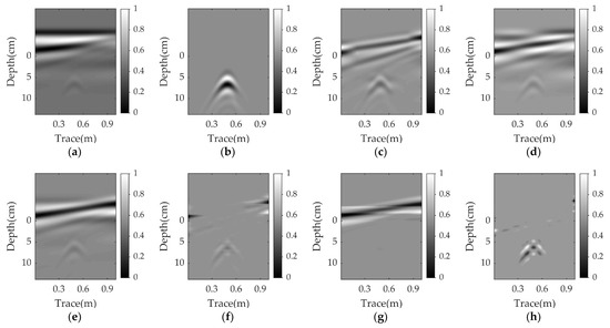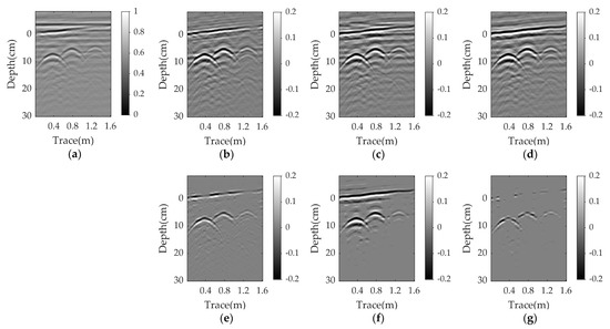 - Liu, C.; Song, C.; Lu, Q. Random noise de-noising and direct wave eliminating based on SVD method for ground penetrating radar signals. J. Appl. Geophys. 2017, 144, 125–133. [Google Scholar] [CrossRef]