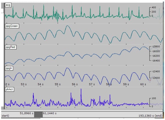The SignalPlant [] software was used to display the data in Figure 8. It facilitates viewing multiple signals with the same sampling rate and has many useful functions, including data processing.