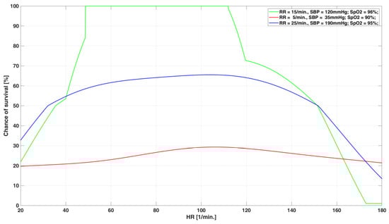 In the case of the so-called tactical reverse []) triage—as part of TCCC (tactical combat casualty care)—depending on the tactical situation, it is used when the priority is to regain the ability to perform tactical operations as soon as possible, so the lightest wounded will be rescued first; thus, they will be able to return to a tactical action as soon as possible, to recreate combat capability. This is a specific situation in which the least injured are saved in order to be able to use them again in combat. In this situation, the value of the function of survival chances will also be very helpful. In general, for the rescuer, the more information on the input, the better, and the function of survival chances—colloquially speaking—allows you to assess which of the red ones is potentially “more” red than the rest, which can improve the actions of medics in terms of prioritizing evacuation.