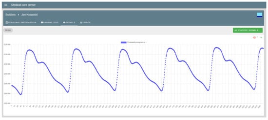The “Signals” tab allows visualization of the selected biomedical signal registered by the measurement module of selected soldier. Figure 15 shows an example visualization of one of the testing biomedical signal (i.e., photoplethysmogram).