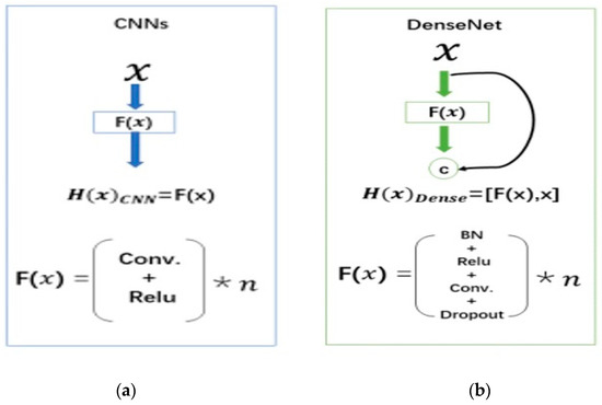 Network architecture:(a) conventional CNN and (b) DenseNet.